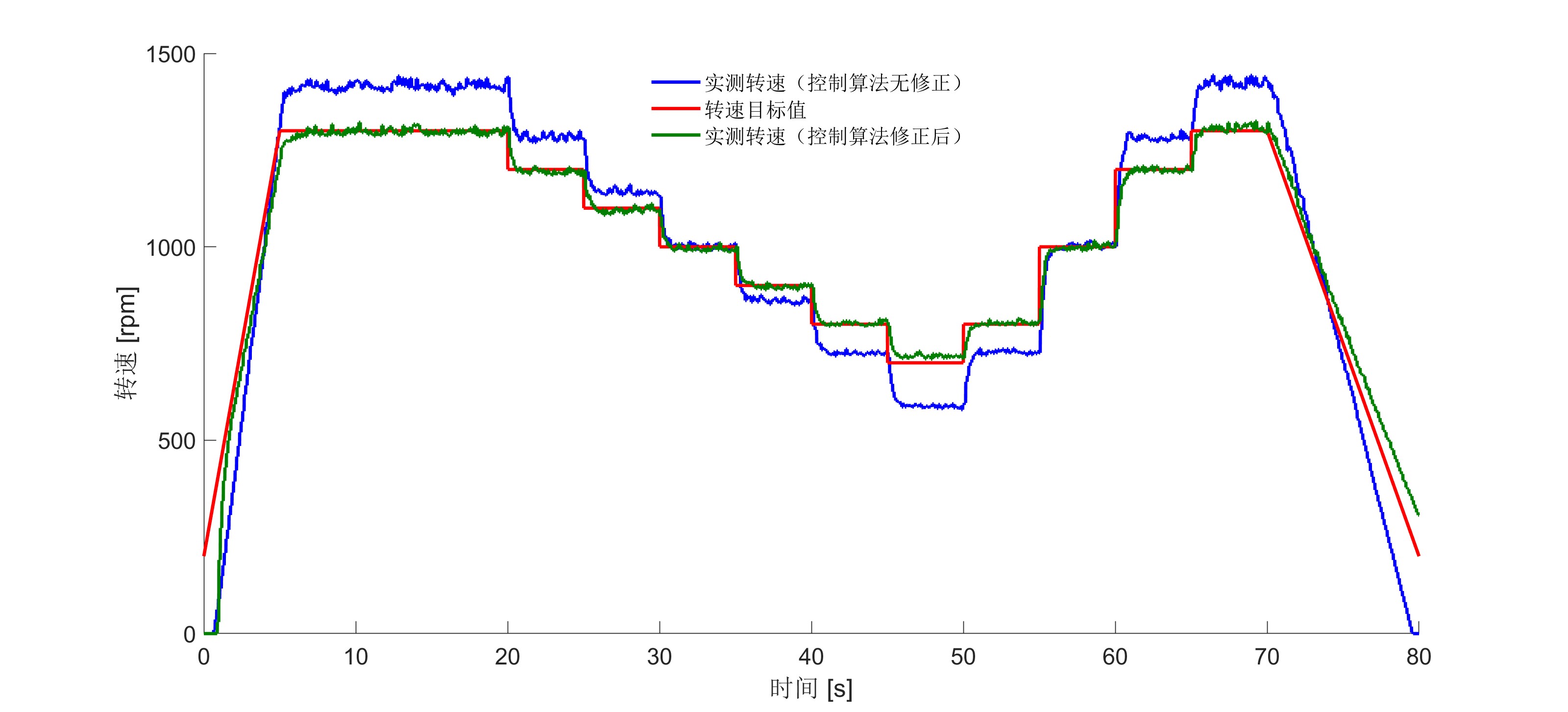 试验结果表明,电机相对控����� �������Ƴ������������ �������Ƴ������������ �������Ƴ������������ �������Ƴ�������制指令的跟随性较差,这是因为电机本体转速与电����� �������Ƴ������������ �������Ƴ������������ �������Ƴ������������ �������Ƴ�������压的线性度不是很好(淘宝货����� �������Ƴ������������ �������Ƴ������������ �������Ƴ������������ �������Ƴ�������,成本不到200元),当����� �������Ƴ������������ �������Ƴ������������ �������Ƴ������������ �������Ƴ������转速(额定约为1000rpm)过高或者过低时工况����� �������Ƴ������������ �������Ƴ������������ �������Ƴ������������ �������Ƴ�������点会发生漂移。